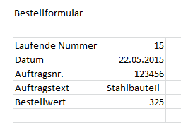 ich habe eine Tabelle entworfen, Spalte A steht eine laufende Nummer 1 bis 100. In Spalte B,C,D,E,F sollen aus einem anderen Dokument Werte/Inhalte (Auftragsnummern, Datum, Bestellwert etc.) automatisch übertragen werden!