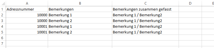 500 Inhalt A Hier soll nun der Inhalt aus B2 und B3 auf Grund der gleichen Adressnummer zusammen