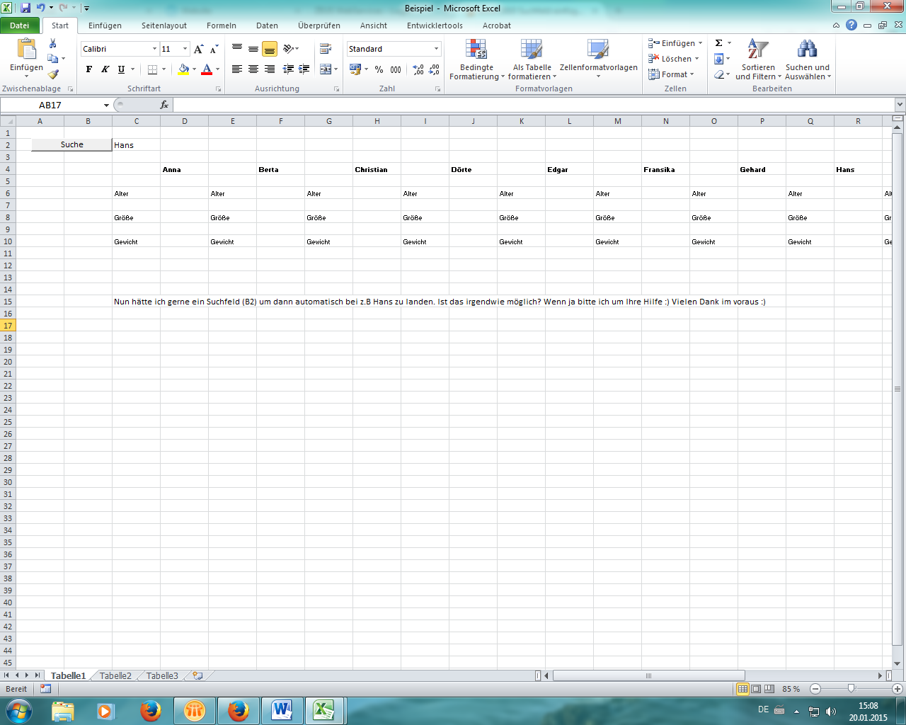 Nun würde ich dennoch gerne ein "Suchfeld" in meiner Tabelle haben, um an gewisse Stellen (In dem Fall Namen) schnell hinzugelangen ohne alles durch zu scrollen oder über strg+f dort zu suchen.