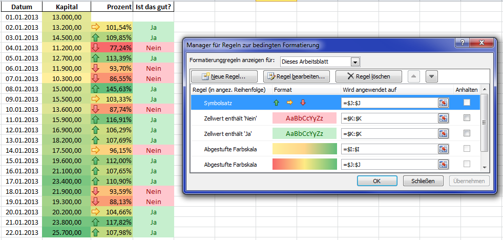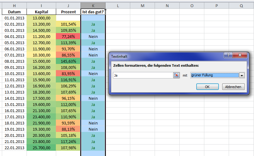 ich nutze Excel 2010 und habe zur Problematik Einfärben von Zellen eine Frage.