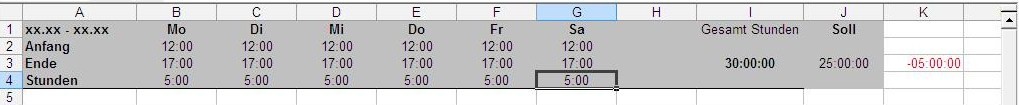 ich habe jetzt (mit hilfe dieses threads! ) eine halbwegs brauchbare Tabelle, die aus Anfang, Ende, Nettoarbeitszeit besteht, am Ende die Soll mti den Ist Stunden des Monats vergleicht und alles ist prima. nur: ich habe die soll und die ist stunden als dezimalzahl, somit auch die noch fehlenden stunden, die hätte ich aber gern im format hh:mm. wie kann ich die umrechnen? habe das gefühl es können keine stunden über 24h angezeigt werden....