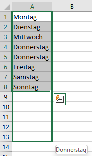 Es soll also immer das Datum von Montag bis Freitag aufgelistet werden, wobei der Donnerstag 2x nacheinander aufgelistet wird. BIsher konnte ich das Problem - auch mit ChatGPT - nicht lösen. Hat jemand aus der Community eine Idee? Vielen Dank!