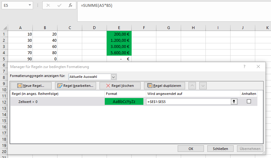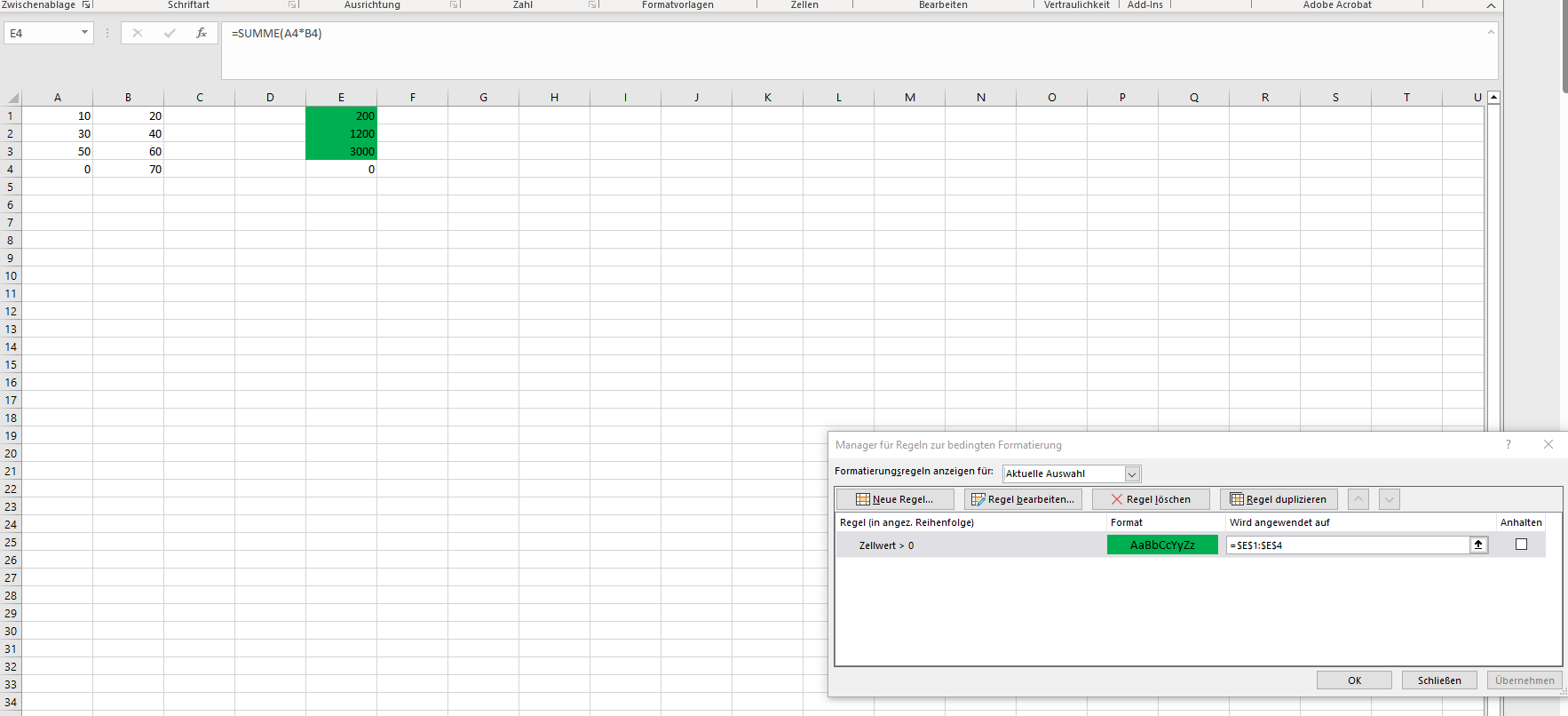 ich stehe vor einem für mich, auch nach einiger Recherche, unlösbaren Problem mit der bedingten Formatierung in Excel.