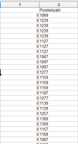Hierzu habe ich (vgl. Screenshot) eine Spalte vor der Spalte mit den PLZs eingefügt, die Nullen beinhaltet. Wie füge ich die beiden Spalten zusammen? Oder gibt es eine andere Lösung, die Spalte mit den PLZs mit führenden Nullen zu versehen?