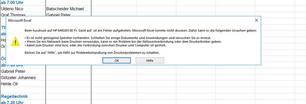 Keine Ahnung wie das mit dem Drucker (der HP M402 ist der Standarddrucker) zusammenhängen soll