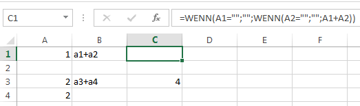 Wenn a1 einen Wert enthält und A2, dann sollen A1 und A2 zusammengezählt werden;