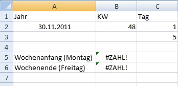 Ich habe es jetzt wie auf der Seite gemacht http://ms-excel.eu/formeln/beispiel-formeln-datum/excel-erster-letzter-tag-von-kw.html