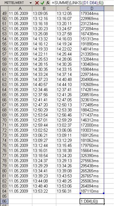 ich habe eine Frage bezüglich Excel. Und zwar würde ich gerne den Durchschnittswert von 84 Zellen berechnen. Ansich ja kein Problem. In meinem Fall aber schon, da in den relevanten Zellen nicht nur Ziffern sondern auch ein Text steht! Somit versuchte ich mit der Funktion "LINKS" nur die ersten 6 Stellen zu verwenden. Aber anscheinend kann ich die Funktion nicht auf einen Wertebereich anwenden?
