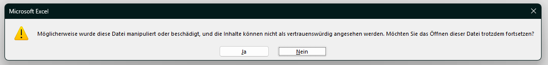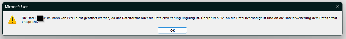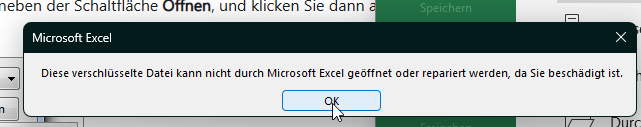An zwei anderen PCs probiert, die Datei zu öffnen. Leider ohne Erfolg. Es kommen die selben Meldungen.