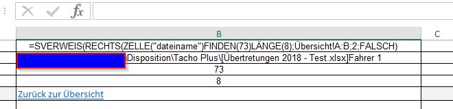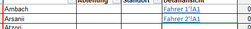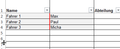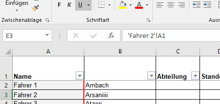Füge in "B1" des Blattes "Fahrer 2" den Namen ein, der in Spalte "A3" steht.