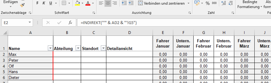Der Grund, weshalb das Tabellenblatt nicht nach dem Mitarbeiter benannt ist, liegt an den Formeln der Übersicht, z.B.