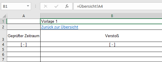Tabellenblatt"Vorlage" gibt vor, welcher Inhalt in jedes Tabellenblatt beim Erstellen eingefügt wird