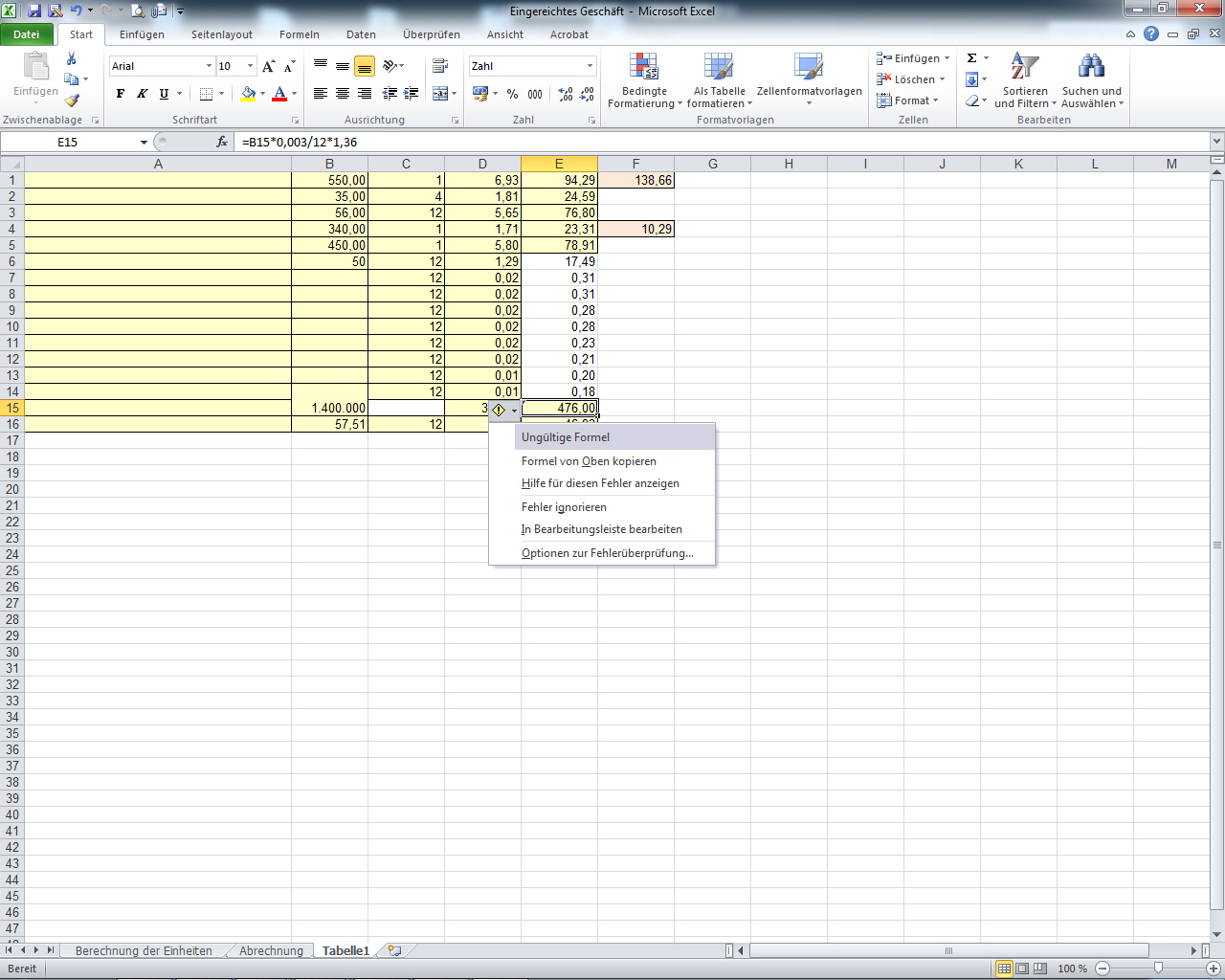 Wenn ihr besätigt, dass die Formel an sich so passt und sie geht ja auch, so wie ich das sehe, dann klicke ich jetzt einfach auf ignorieren und der Fall ist erledigt.