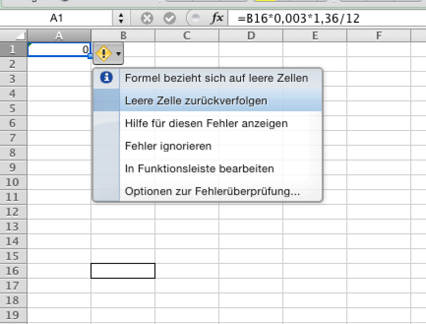 Daher macht er mir jetzt wohl den Hinweis, dass evtl. die Formel in Zeile 16 auch nicht stimmen kann, da sie dort nicht mehr fortgeführt wird.