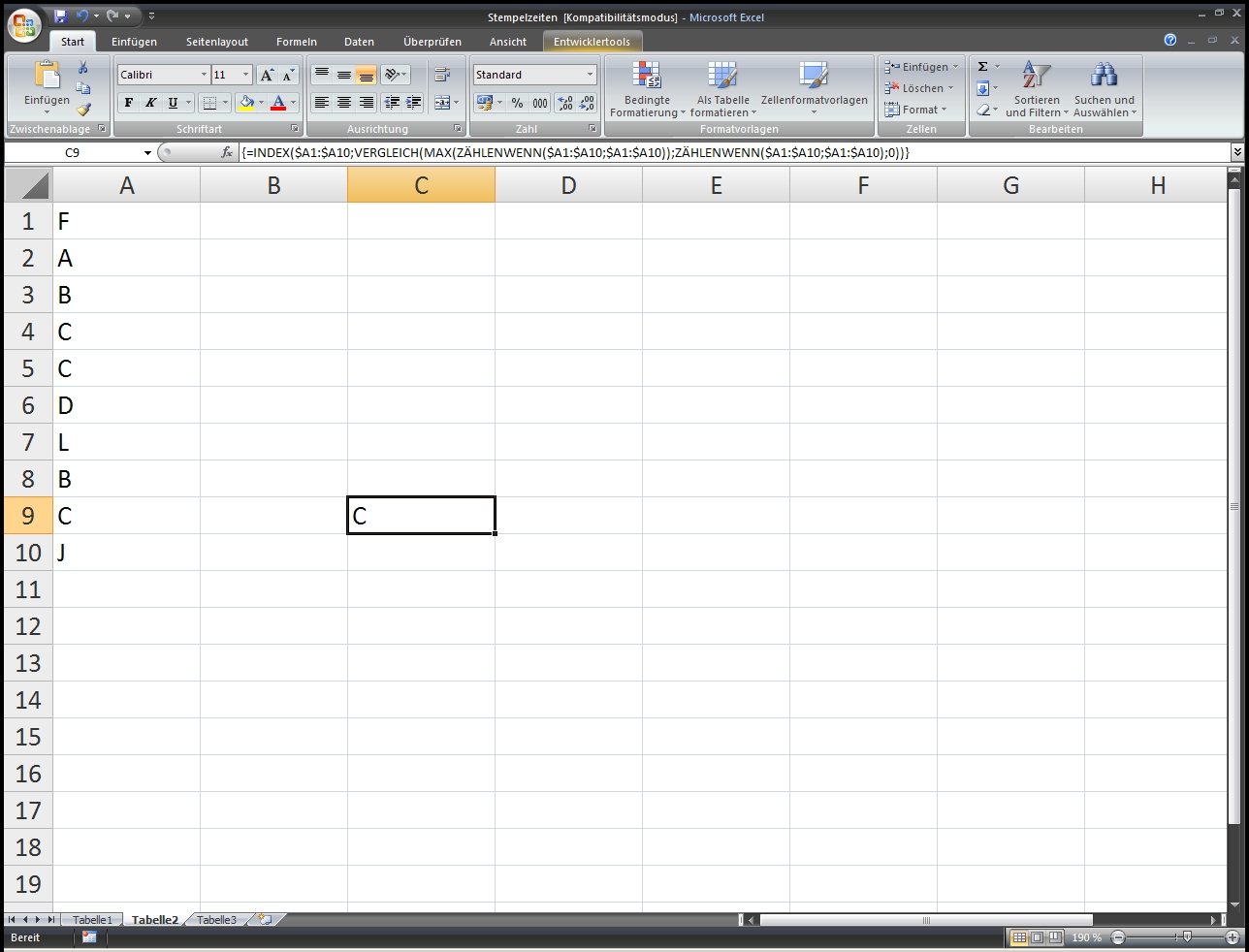 Bisher hab ich durch google nur rausifnden können wie man den häufigsten Wert einer Spalte rausbringt, jedoch nicht für eine Matrix!