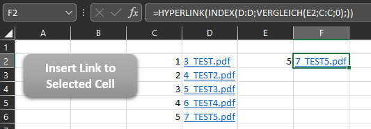 Jetzt ist es aber so, dass die Reihenfolge nicht der Aufstellung entspricht. Also wollte ich mittels HYPERLINK und INDEX den Link in die Aufstellung übertragen. Das Problem ist nur dann, dass ich zwar einen Link an der richtigen Stelle habe, jedoch die Addresse anscheinend nicht mit übernommen wird und sich die PDF nicht öffnen lässt. Die Datei lässt sich aber über den eigentlichen Link, der über das Macro eingefügt wurde, öffnen. Gibt es eine Excel-Funktion, die mir bei meinem Problem hilft?