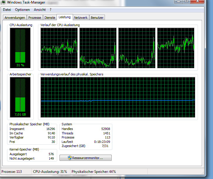 Leider dauert da manche Aktionen locker 5 Minuten und das finde ich für meinen Rechner (siehe Signatur) und Daten auf der SSD recht langsam. Im Taskmanger sieht man das Excel durchgehend 25 % CPU Ressourcen benutzt. Daraus schließe ich das nur 1 Kern komplett ausgelastet wird.