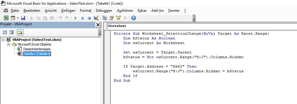 ich hätte gerne ein Makro in EXCEL, welches mir beim klick in eine Zelle weitere Spalten einblendet und wein weiterer klick diese Zeilen wieder ausblendet.