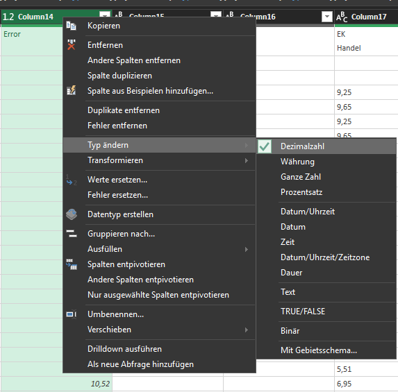 Über den Power Query ziehe ich mir alle Daten in eine Tabelle zusammen aber leider übernimmt es mir den wichtigen € Betrag nicht korrekt.