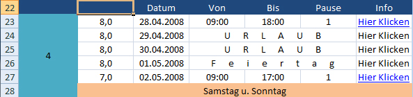 ---> Von - Bis - Pause = Stunden