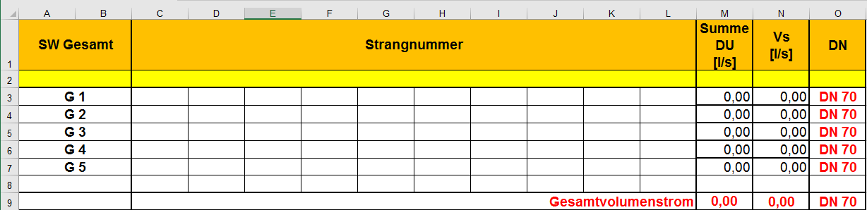In meiner Summenformel habe ich nun alle vorhandene Spalten eingetragen: