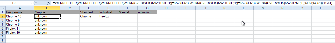 In der Spalte Gruppe möchte ich dann angeben, ob es Aktiv, oder Inaktiv ist.