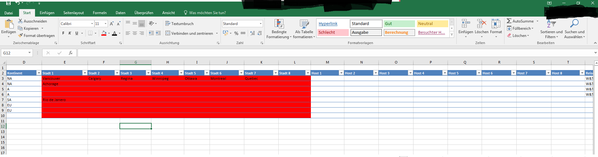 ich bin gerade dabei eine Weltreise zu planen, und habe im Zuge dessen schon einige Potentielle Gastgeber kennegelernt. Da eine Weltreise Planung bedarf, und ich nen kleiner Excel Fanatiker bin, will ich die Zielstädte und die Hosts in einer Tabelle einfügen.
