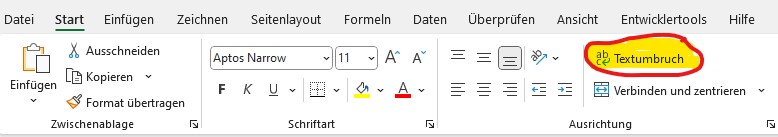 Kann man das so einstellen, dass der Satz automatisch einen Zeilenumbruch in der gleichen Zelle macht?