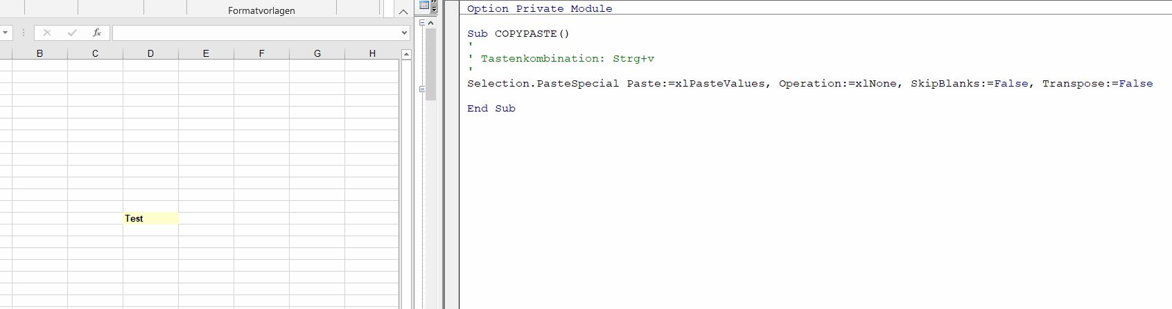 ich möchte gerne, dass auf einem Tabellenblatt beim Einfügen über die Tastenkombination automatisch nur Werte eingefügt werden.
