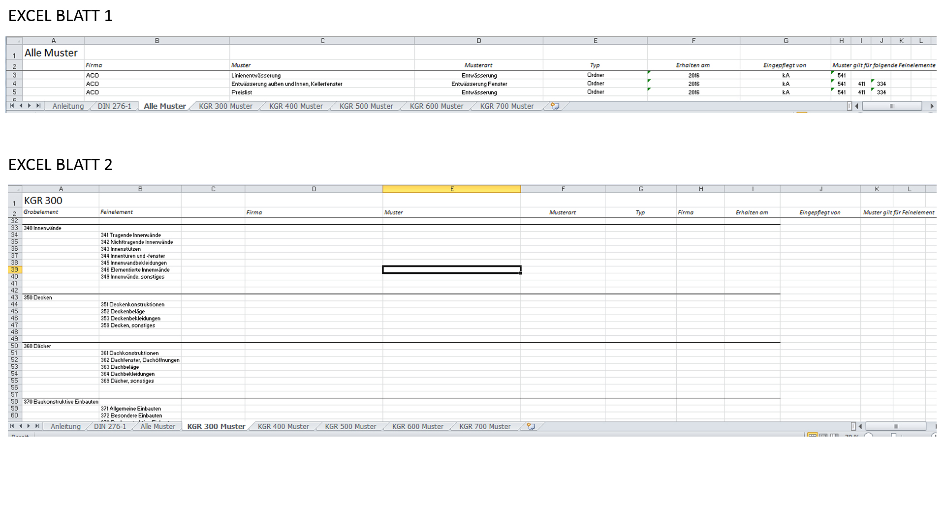 Ich verfasse eine Excel Datei bei uns in der Firma, die alle Materialmuster nach DIN 276 sortieren soll.