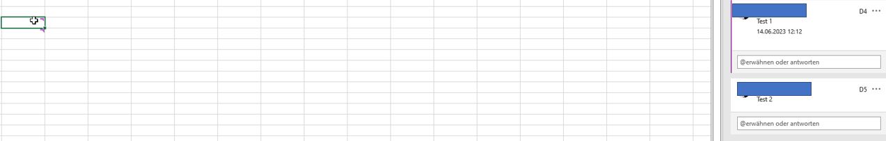 Excel | wie Kommentare in rechter Spalte nur für Zelle einblenden?