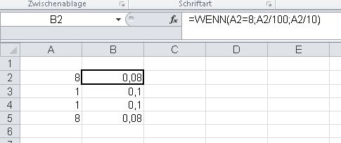 Ich habe viele Zellen, in welche ich Werte wie 0,08 oder 0,1 eingeben muss. Gibt es hier eine Zellformatierung, die die Eingabae 008 oder 01 in 0,08 oder 0,1 umwandelt.