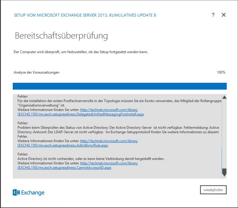 Also ich hab folgendes Problem bei der Installation von Exchange 2013 auf einem Windows Server 2012R2 (VM - HyperV).