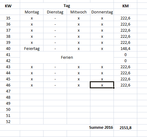 Habe ein Fahrtenbuch um meine Fahrten (Strecke in KM) für die Abendschule zu Dokumentieren.