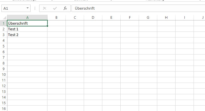 Ich habe eine Excel Tabelle, die ich mit einer Überschrift ausgestattet habe.