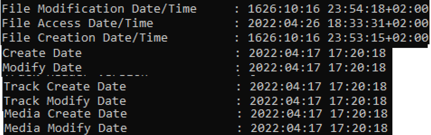 dazu habe ich mir das exiftool(-k) heruntergeladen. wenn ich nun die datei öffne, sehe ich die ganzen exakten daten. auch wenn ich nun unter windows eigenschaften/details die daten lösche, werden mir weiterhin erstelldatum etc angezeigt. mit dem tool NewFileTime_x64 konnte ich diese verändern, jedoch tauchen trotzdem die originaldaten noch weiter unten wieder auf.