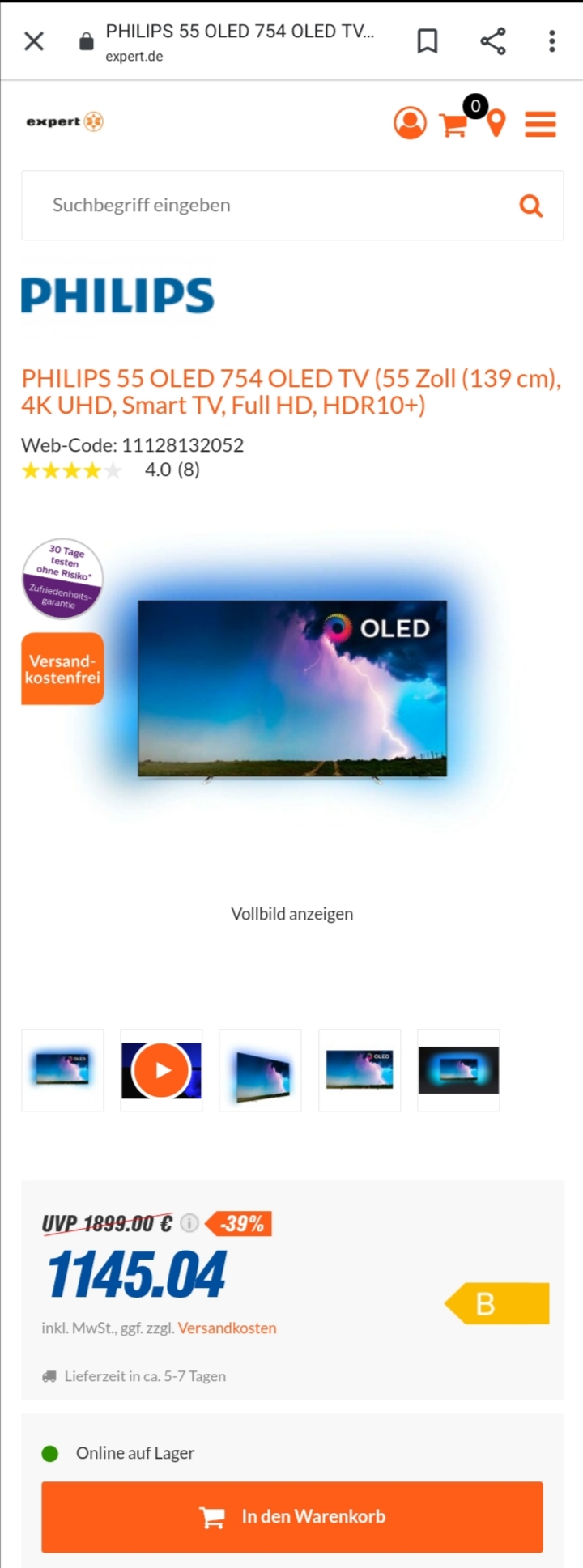 Und das war es. Genauso wie es gekommen ist habe ich es auch vermutet. Das Problem dabei ist. Den Fernseher gibt es zurzeit noch zu kaufen. Bei Euronics, was zu Expert gehört als auch bei Expert selber gibt es den Fernseher online noch zu erwerben.