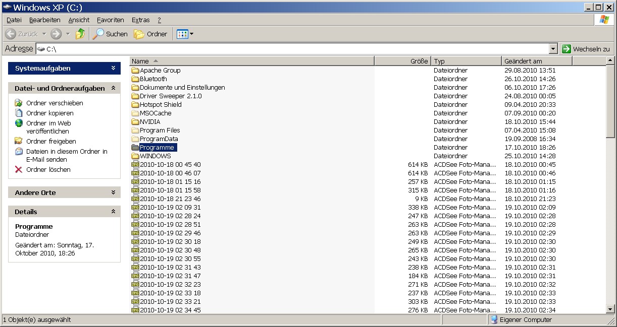 Ah, ich glaube jetzt weiß ich was du meinst. Bei XP reagiert drag+drop nur wenn du mit der Maus in der Spalte "Name" bist.