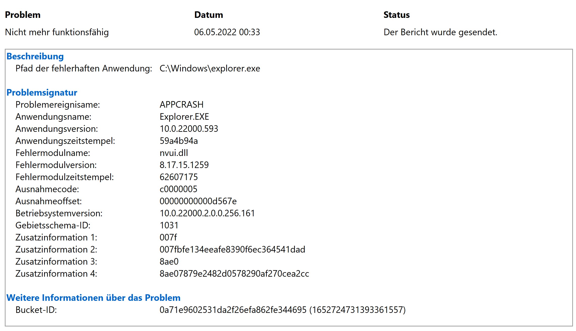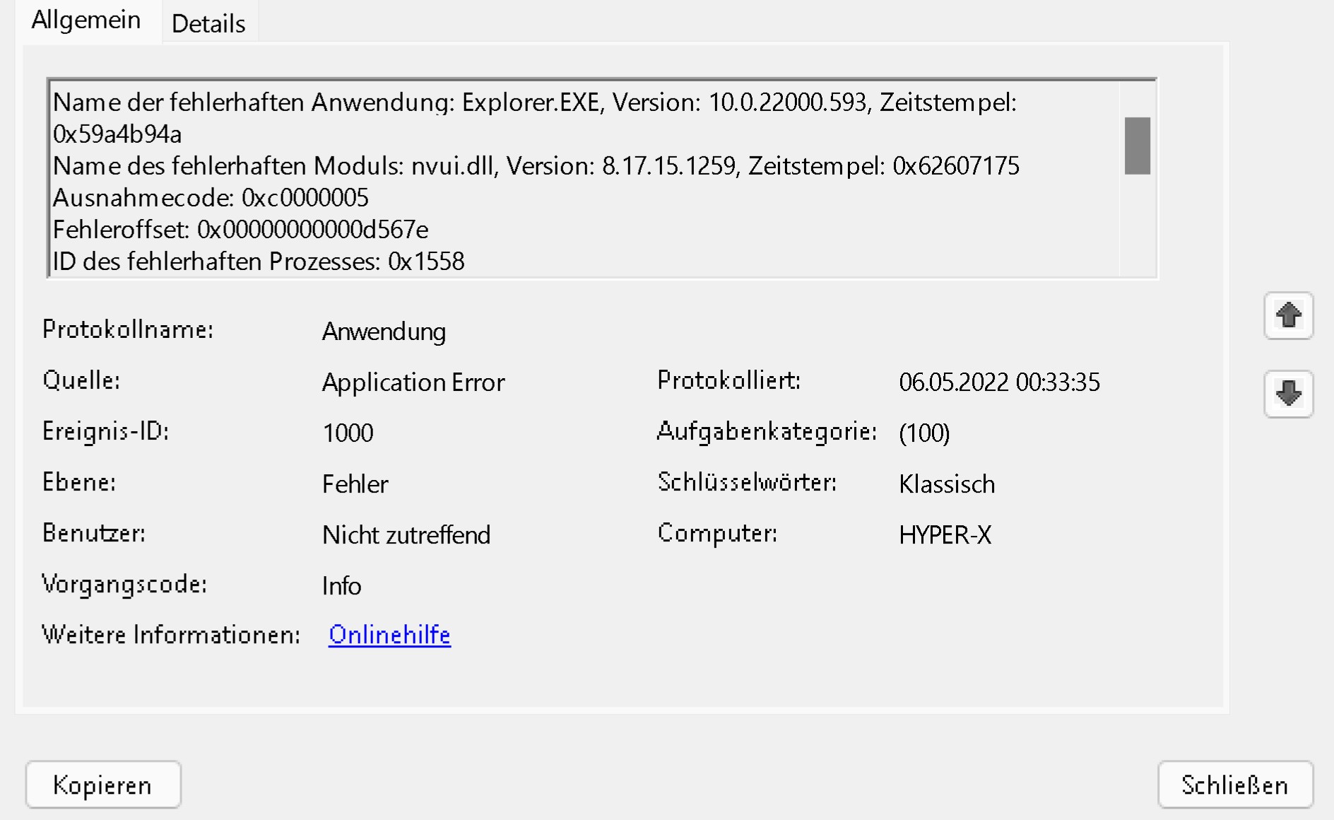 Ich habe dann mal in denn Zuverlässigkeitsverlauf und in die Ereignisanzeige geschaut und bekomme diesen Fehler angezeigt. 🤔