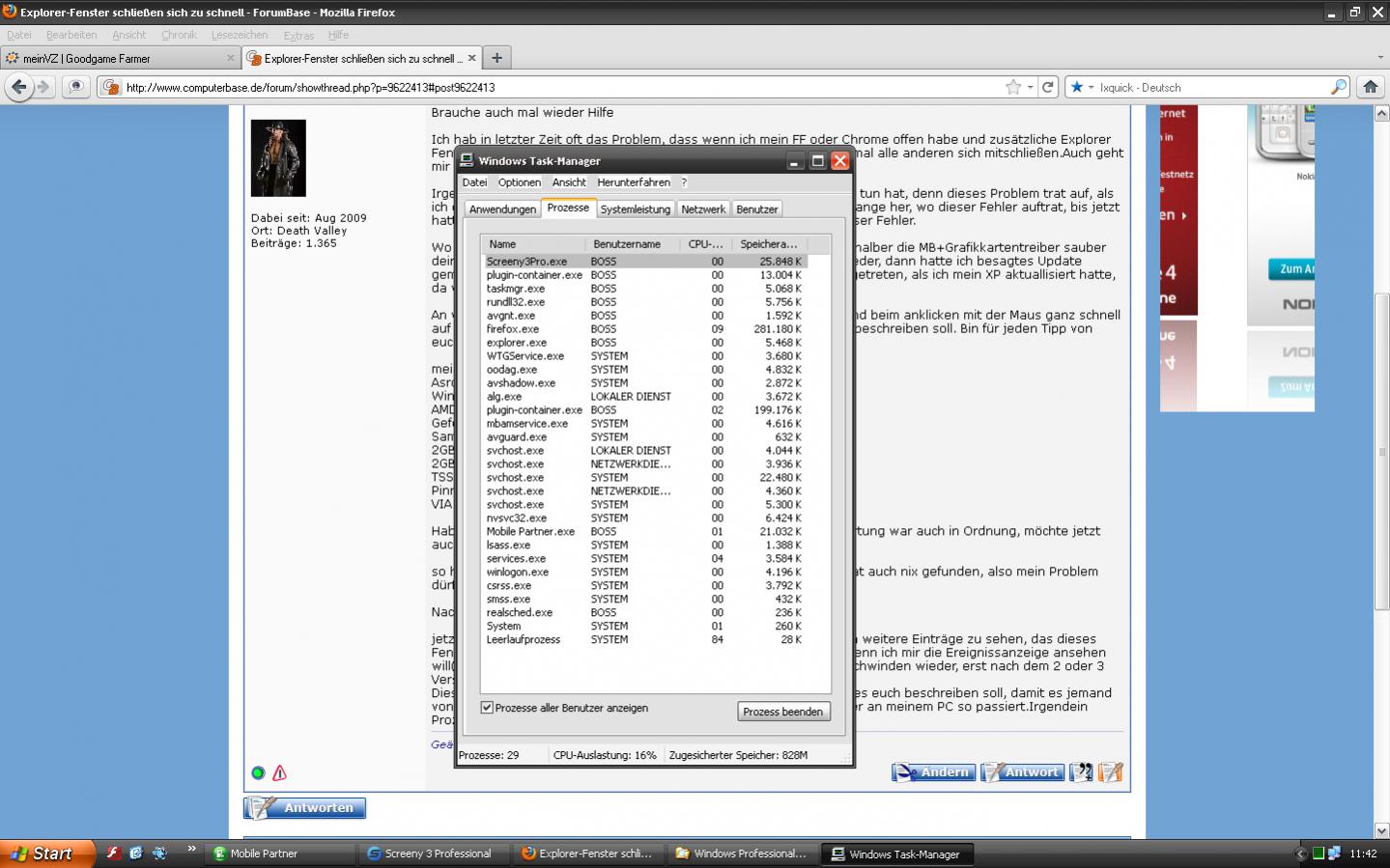 Ich hab in letzter Zeit oft das Problem, dass wenn ich mein FF oder Chrome offen habe und zusätzliche Explorer Fenster auf habe, und ich dann ein Fenster schließen will, das auf einmal alle anderen sich mitschließen.Auch geht mir das schließen irgendwie zu schnell von statten