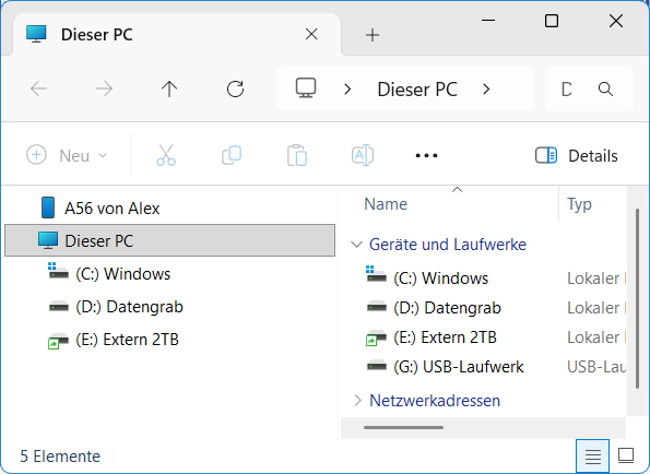 Die Möglichkeiten zur Anpassung des Navigationsbereiches sind da jetzt fast voll ausgeschöpft, ich kann jedes einzelne Element des Navigationsbereiches nach Belieben ein- oder ausblenden.