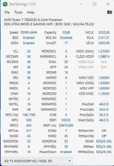 meinem ASUS X670E bei 6000 MT/s nicht mit den 1,35V für den MC aus dem DOCP zurecht.