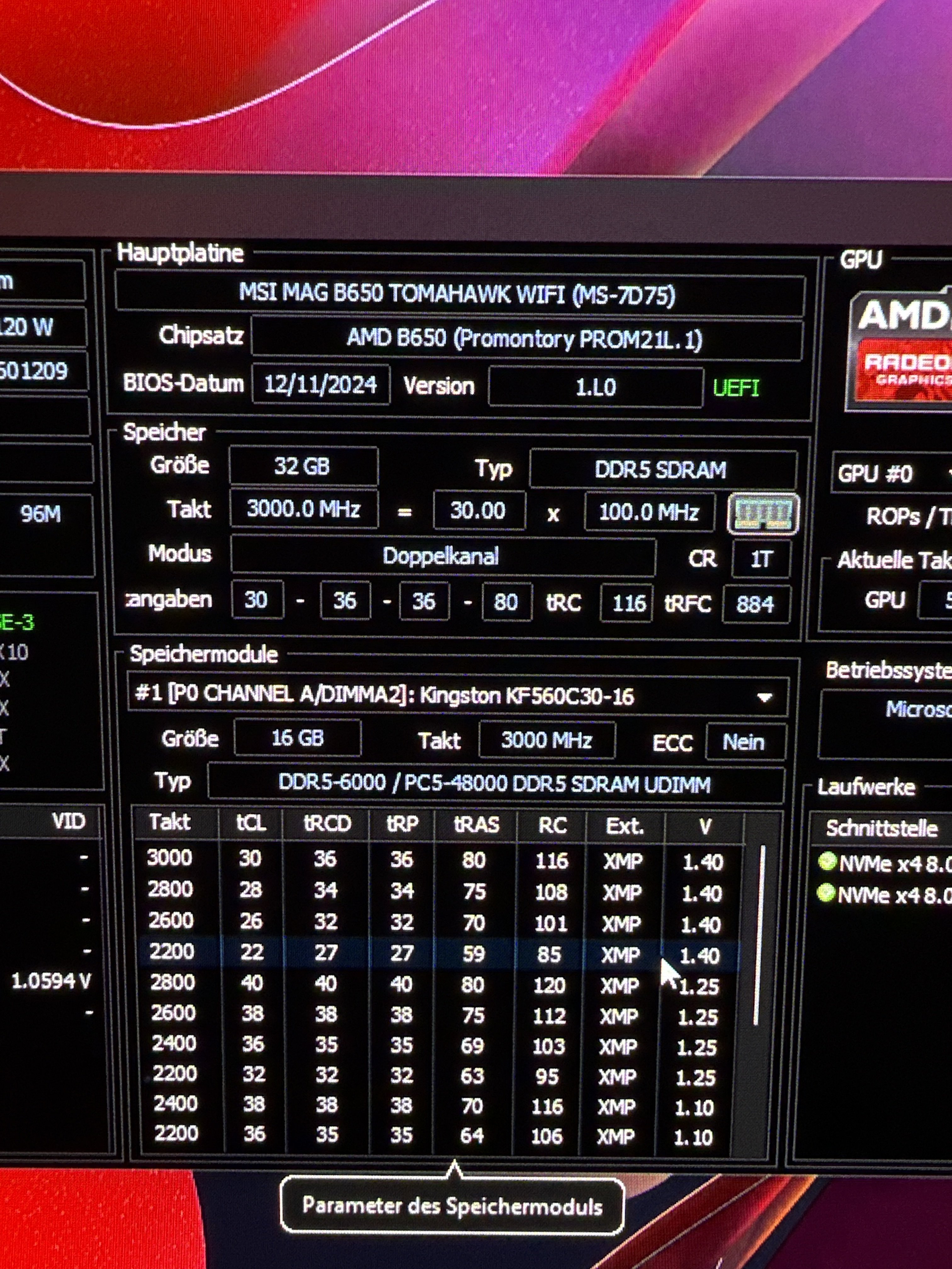 Schau Dir den Speicher mal mit HWINFO (nur Übersicht) an. Das kann alle Profile anzeigen und nicht nur 4, wie CPU-Z.Ndero schrieb:Auf der verpackung steht auch drauf Expo