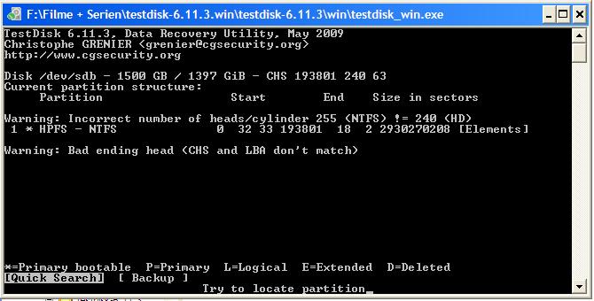 Habe Testdisk gestartet und der sagt mir Incorrect number of heads 240 statt 255.