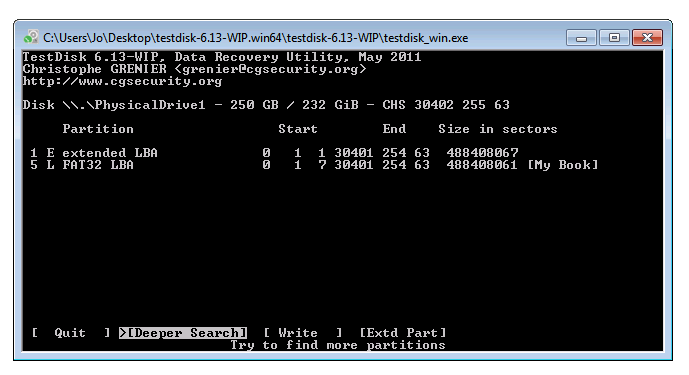 Aber nach der tieferen Suche Deeper Search, wird deine Partition richtig gefunden.