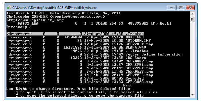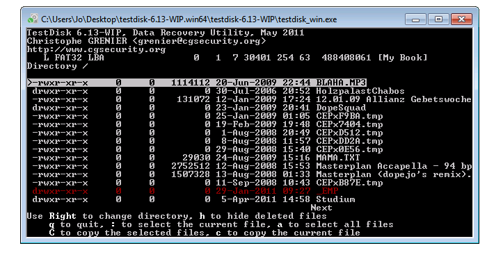 Rot markierte Dateien sind beim Dateisystem FAT gelöschte Dateien.