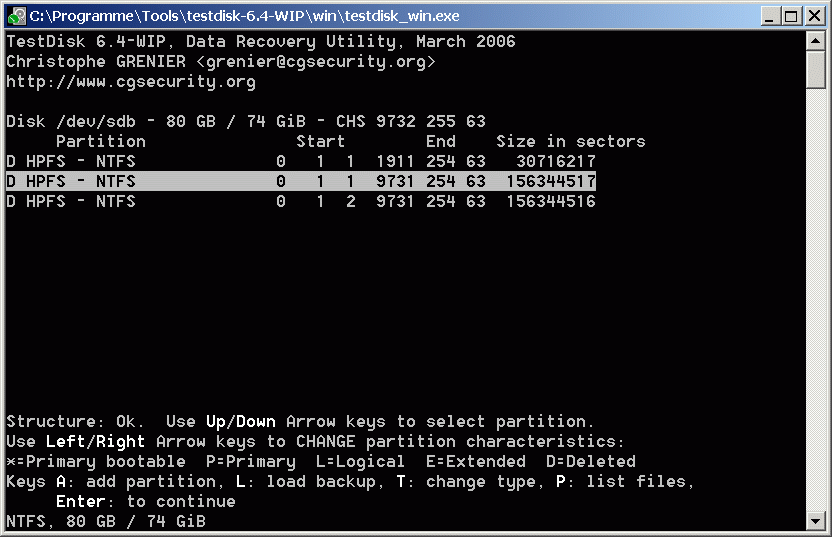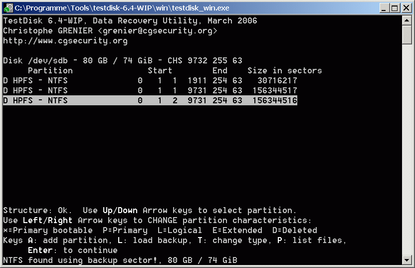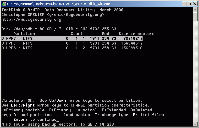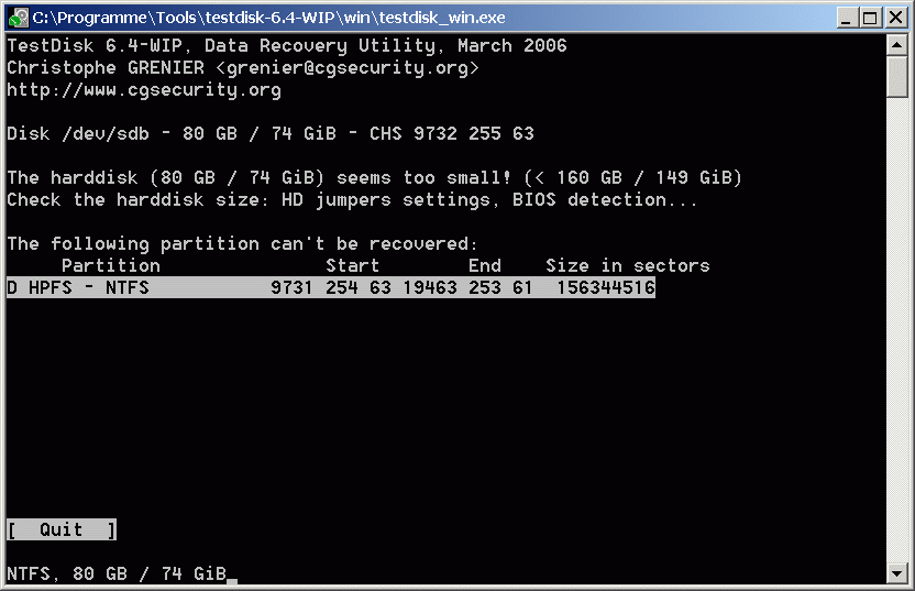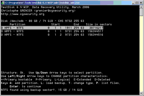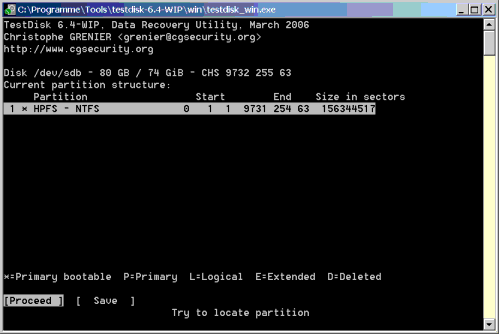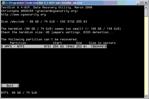 Mit testdisk habe ich es versucht. Leider konnte ich die Platte nicht wieder herstellen bzw. habe immer noch keinen Zugriff. Folgende Meldungen sind gekommen: