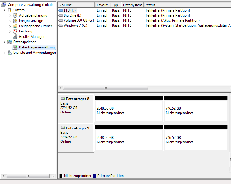 Datenträger 8 2048GB nicht zugeordnet und eine weitere Partition 746,52 GB