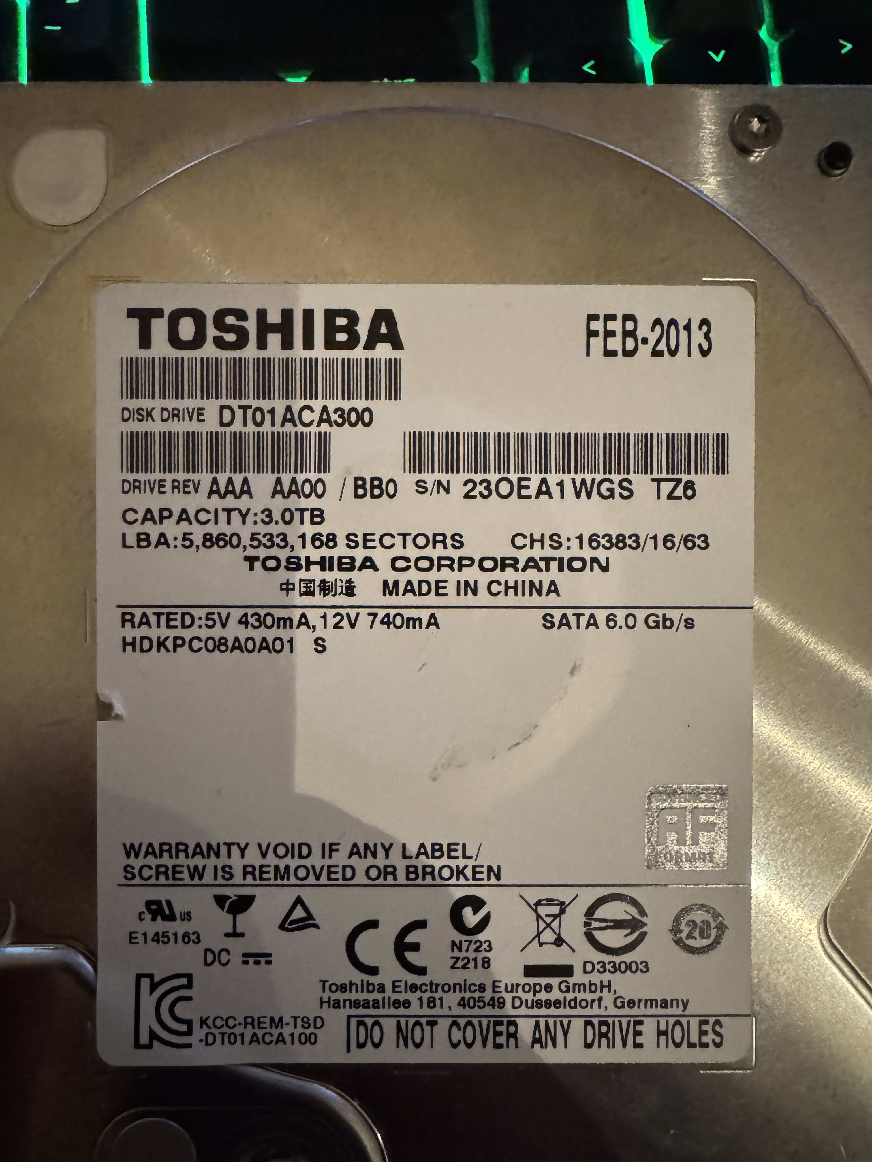Habe hier noch eine externe 3,5" HDD von Intenso (Toshiba Festplatte) rumliegen und diese bereits aus dem Gehäuse ausgebaut.