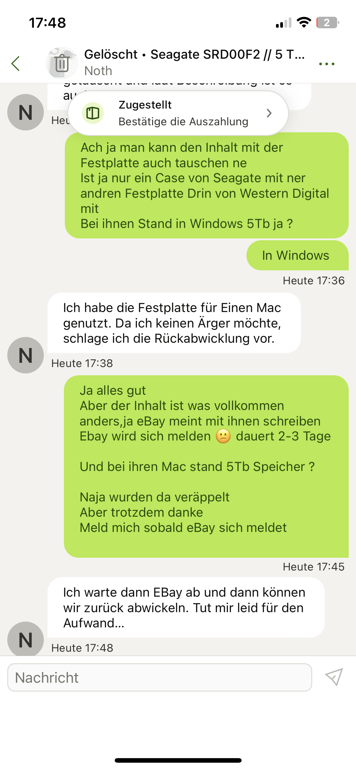 Kommt mir bekannt vor. Es sind nicht nur nette Menschen auf eBay unterwegs ....